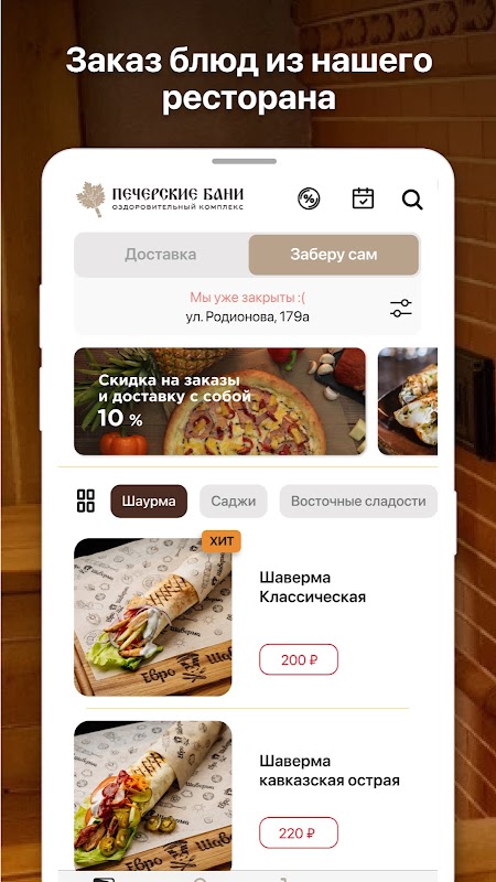 "Pechersk Baths" ایپلی کیشن آپ کو دورے کے لیے جلدی سے ٹکٹ بک کرنے اور خریدنے، کھانے پینے کی اشیاء کا آرڈر دینے، اور ہماری خدمات اور خصوصی پیشکشوں کے بارے میں معلومات حاصل کرنے میں مدد کرے گی۔ تمام ایپ صارفین ہمارے لائلٹی پروگرام میں حصہ لیتے ہیں اور ہر خریداری کے لیے بونس روبل کی شکل میں کیش بیک وصول کرتے ہیں۔