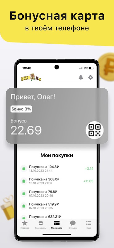 بونس کارڈ اب آپ کے فون میں ہے۔ درخواست میں رجسٹر ہوں اور خریداری کے لیے بونس پوائنٹس حاصل کریں۔