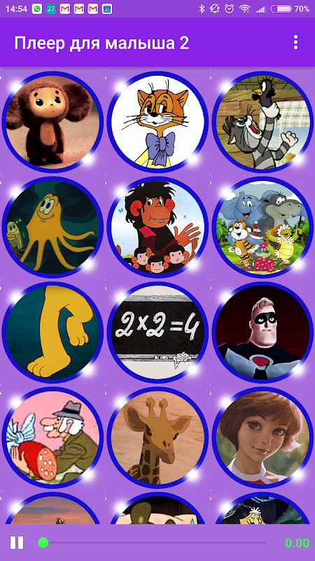 Player for the kid. Children's songs from the cartoons of Soviet times.