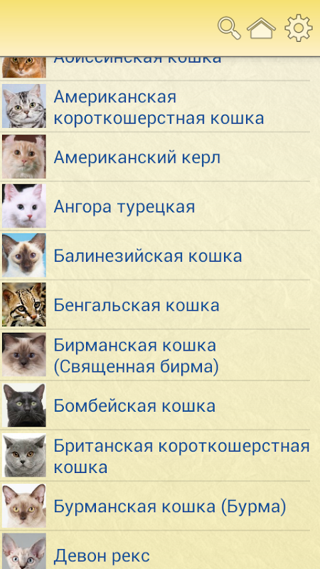 В справочнике вы найдете описание пород кошек с фотографиями, из него вы узнаете подробную характеристику кошечки, информация будет полезна тем, кто собирается приобрести котенка, а так же поможет лучше узнать тем, у кого уже есть любимый питомец, в приложении вы найдете такую информацию: