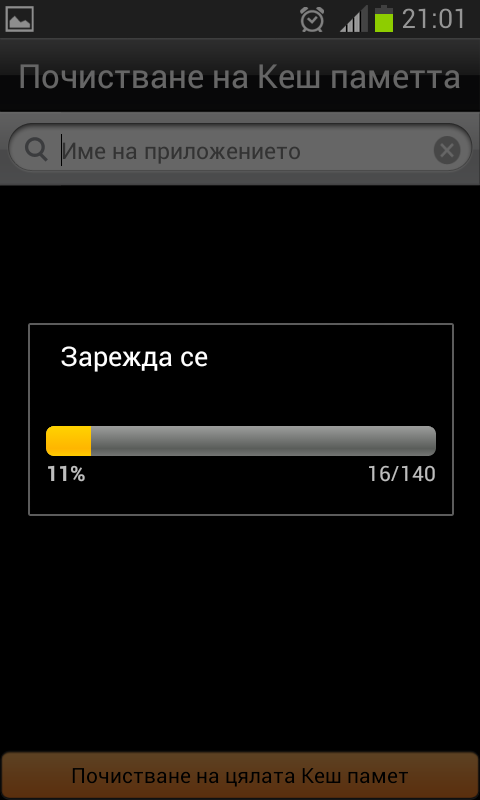 - Показване размера на всички приложения от списъка, които заемат място в Кеш паметта