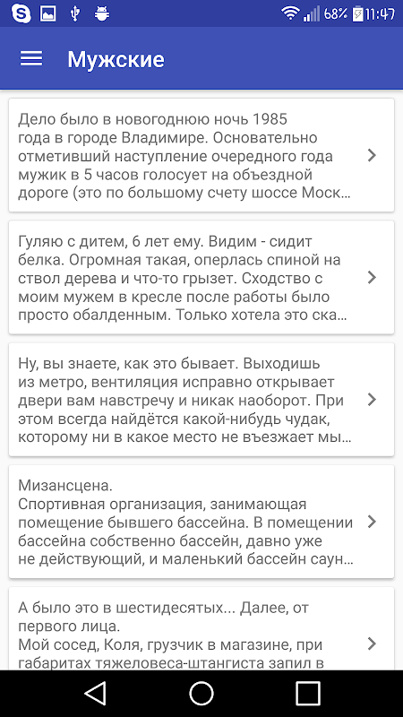 В нашем приложении вы найдете много историй как длинных, так и коротеньких, которыми вы можете поделится в нужное время с знакомыми и близкими. Кто знает, может одна из наших историй поможет заключить контракт на миллион долларов или сразить наповал девушку вашей мечты…