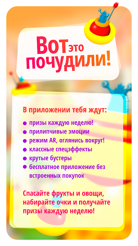 کسی نے اتنے بوائیکس اکٹھے کیے کہ وہ خلا میں سفر کرنے کے لئے روانہ ہوگئے۔ لیکن انہیں لوٹنا پڑا ، کیونکہ بوائکس کو ڈکی اسٹور کے پھل اور سبزیاں کسی بھی چیز سے زیادہ پسند ہیں۔ آپ نے انہیں اغوا کرتے ہوئے پکڑا! اضافی حقیقت میں صرف روشن جذبات ہی پھلوں اور سبزیوں کو بچانے میں معاون ثابت ہوں گے! پھل اور سبزیاں بچائیں ، پوائنٹس جمع کریں اور ہر ہفتے انعامات حاصل کریں!