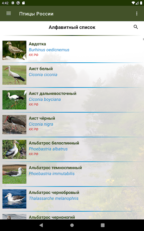 روس کے پرندوں کے لیے گائیڈ، جو روسی پرندوں کی تصاویر، تفصیل اور آوازوں کے ساتھ مکمل فہرست فراہم کرتا ہے۔ حوالہ کتاب نہ صرف گھونسلے بلکہ سردیوں، ہجرت کرنے والی اور گھومنے پھرنے والی نسلوں کو بھی پیش کرتی ہے۔
