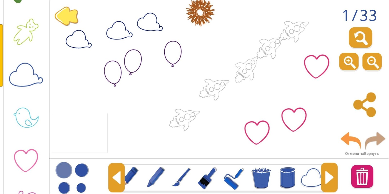 В раскраске детишки смогут рисовать и раскрашивать рисунки совершенно бесплатно. Рисунки будут добавляться каждую неделю.