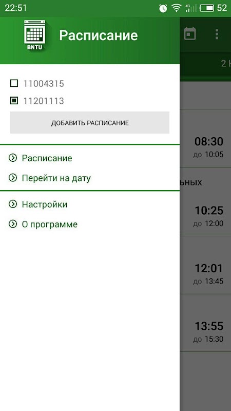 کے پرانے ورژن Расписание для БНТУ [Без серве
