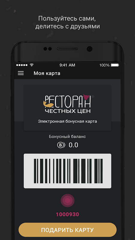 Приложение предназначено для участников программы лояльности Ресторанов честных цен.