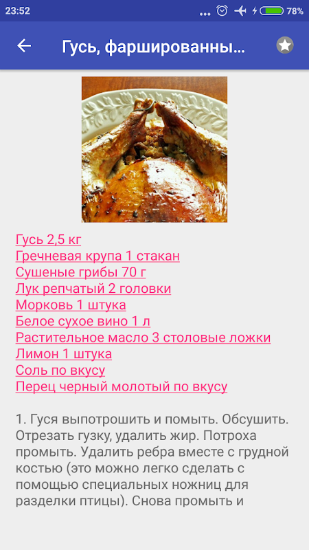- Список необходимых для приготовления блюда ингредиентов, их количество и пропорции;