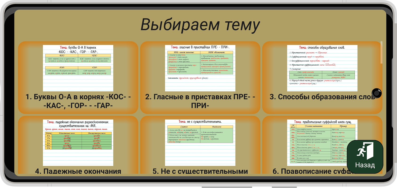 روسی زبان کا کورس ایک انٹرایکٹو گیم کی شکل میں پیش کیا گیا ہے، جو کہ بہت ساری معلومات کو حفظ کرنے اور طلباء کے علم کا فوری جائزہ لینے کا بہترین طریقہ ہے!