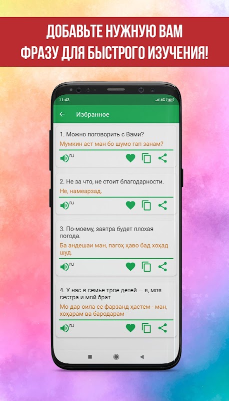 • Вы можете поделиться фразами и копировать в буфер обмена