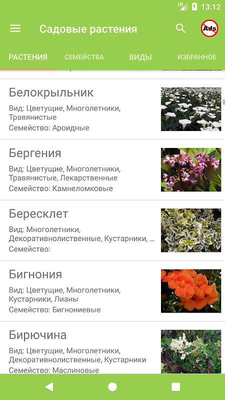 Приложение "Садовые растения и цветы" позволяет вести список избранных растений, использовать удобный поиск по названиям, видам и семействам цветов. Интерфейс приложения в стиле Material design интуитивно понятен, быстр и удобен в использовании.