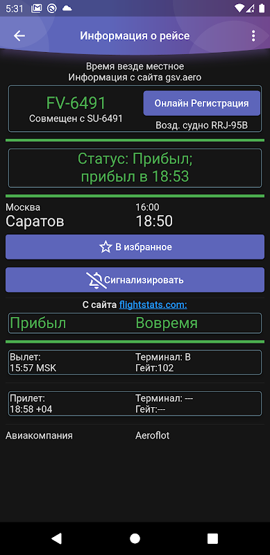 - پروازوں کا آپریشنل ڈیٹا: روانگی یا آمد کا وقت، gsv.aero سائٹ سے شیڈول سے انحراف
