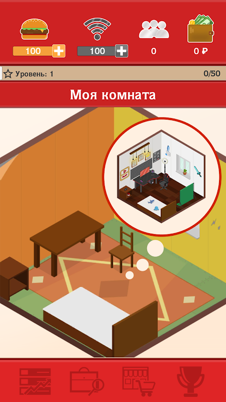- Улучшайте свою комнату благодаря вещам с магазина;