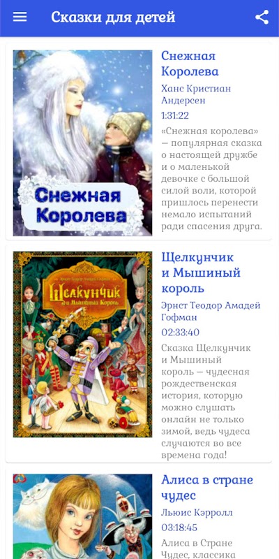 مجموعہ "بچوں کی پریوں کی کہانیاں" روسی اور غیر ملکی مصنفین کے کاموں پر مبنی آڈیو کہانیاں پر مشتمل ہے۔