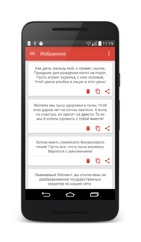 SMS BOX: Поздравления - это лучший сборник смс из более чем 8600 поздравительных сообщений не требующая доступа к интернету. Теперь можно не ломать голову, придумывая оригинальное SMS. Данное приложение поможет найти лучшие слова для дорогих вам людей во время любого праздника. Позволяет сразу из программы отправлять вашим близким, друзьям смс или отправлять поздравления используя почтовый клиент и соцсети. В приложении есть возможность добавления в избранное наиболее понравившихся вам смс, а так же раздел "Мои смс" в который Вы можете добавлять придуманные вами сообщения или прочитанные в другом месте.