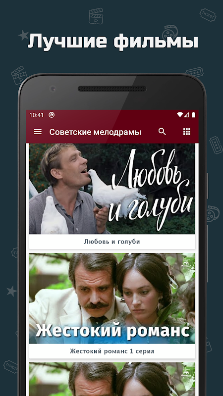 ایپلی کیشن آپ کو سوویت فلمیں "میلوڈراما" کی جذباتی صنف میں دیکھنے کی اجازت دیتی ہے۔