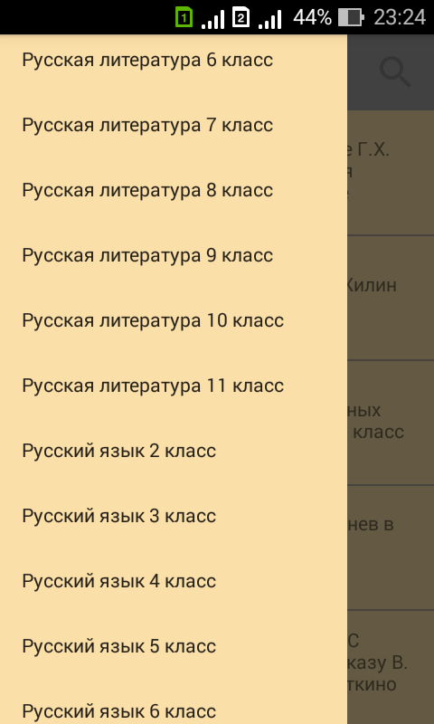 В приложение для удобства поиска мы разбили сочинения по классам: