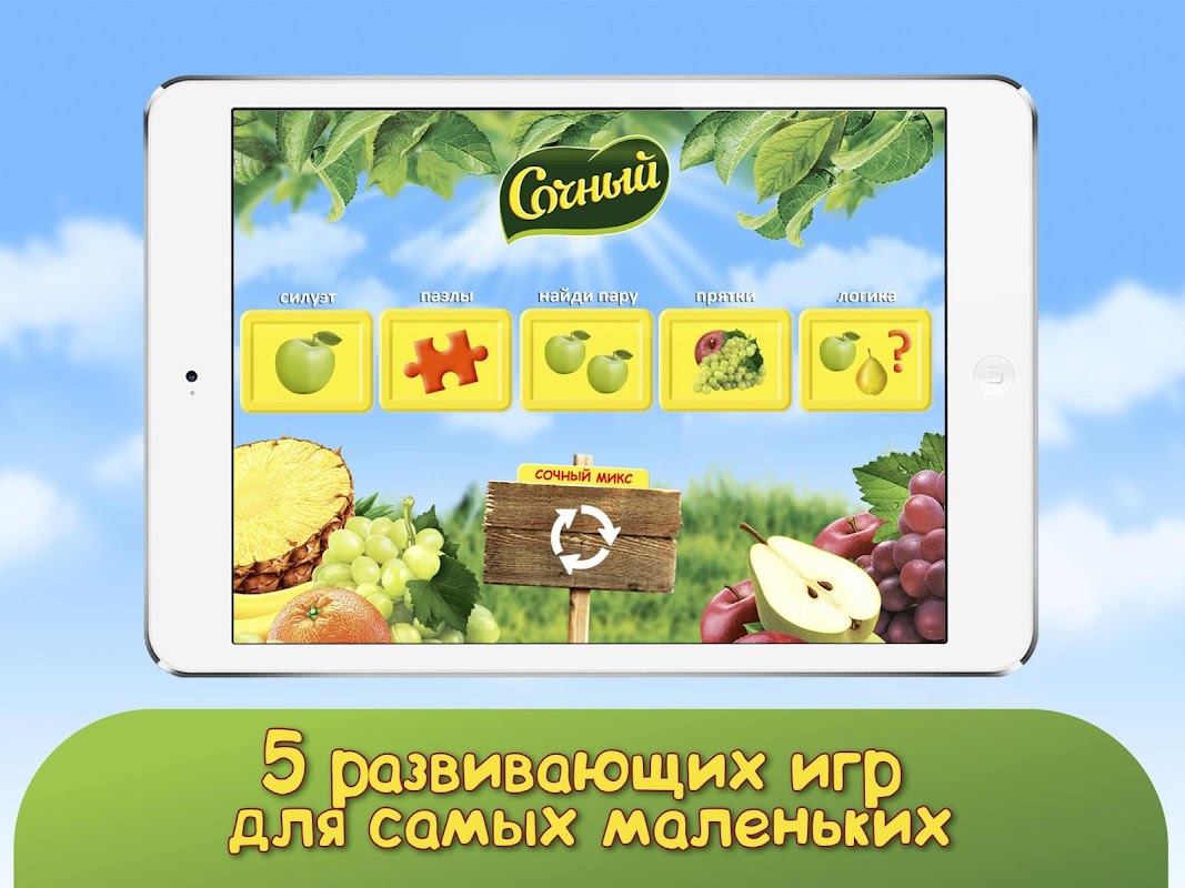 "Сочный фрукт" - 5 развивающих обучающих игр для малышей с сочными фруктами и соками "Сочный", помогут развить ранние навыки и умения (логику, память, внимание), в простой, но увлекательной форме.