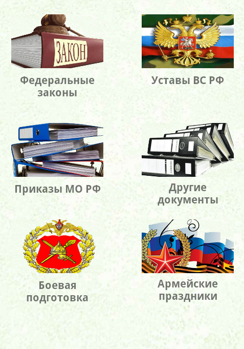 Армейский справочник для военнослужащего. Содержит законы, приказы и положения о военной службе.