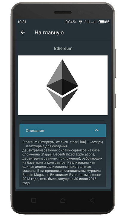 В приложении «Справочник криптовалют» рассматриваться такие криптовалюты: