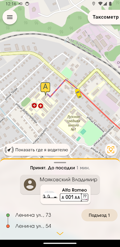 لوزا (کیروف کے علاقے) میں ٹیکسی آرڈر کرنے کا پروگرام۔