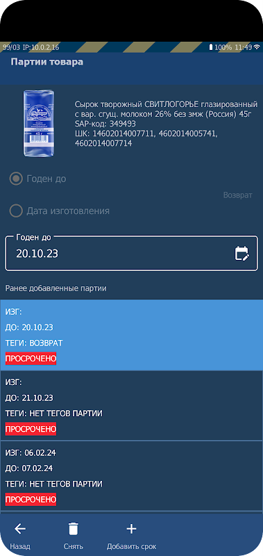 اسٹور میں سامان کی میعاد ختم ہونے کی تاریخوں کو برقرار رکھنے اور ریکارڈ کرنے کے لیے درخواست