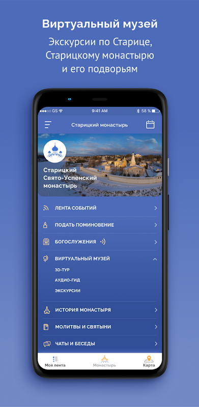 ملٹی فنکشنل موبائل ایپلی کیشن "اسٹارٹسکی ہولی ڈورمیشن خانقاہ"