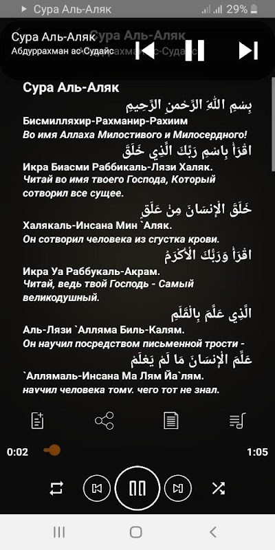 کے پرانے ورژن Сура Аль-Аляк аудио и текст