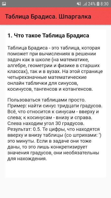 Таблица Брадиса: синусы и косинусы, тангенсы, котангенсы. Шпаргалка