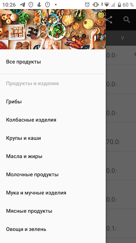 فوڈ کیلوری کی کتاب ، جس میں تصاویر اور تمام اقدار کے مطابق چھانٹ رہا ہے