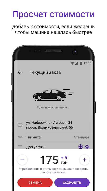 добавление стоимости к заказу - для более быстрого поиска машины, вы можете немного увеличить стоимость поездки