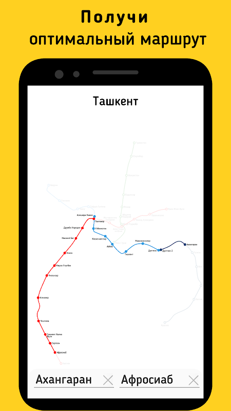ایپلی کیشن آپ کو تاشقند شہر کی میٹرو میں بہترین راستے کا انتخاب کرنے کی اجازت دیتی ہے۔
