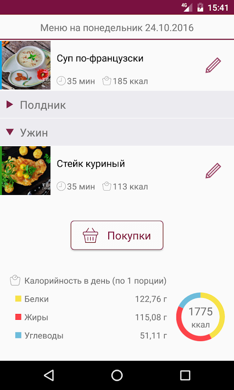 Питайтесь правильно! Спланируйте свой рацион, мы посчитаем калорийность, БЖУ и автоматически составим список покупок для похода в магазин.