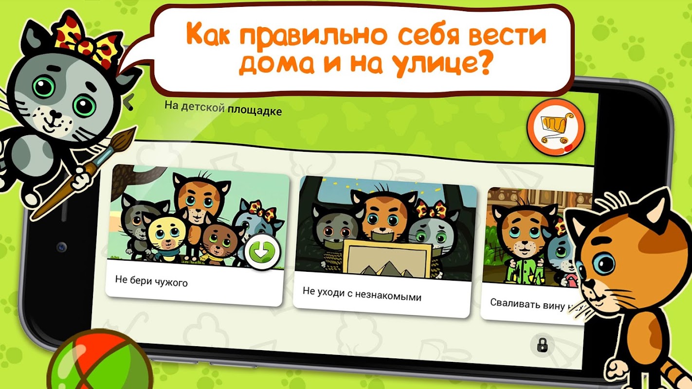 Уникальный развивающий цикл из 91 мультфильма для детей от 2-х лет. Основа приложения — популярные сериалы «Три котенка» и «Котяткины истории», имеющие более 35 млн. просмотров на YouTube. Каждая серия – это небольшая музыкальная кошачья история, которая знакомит малыша с правилами поведения дома и на улице.