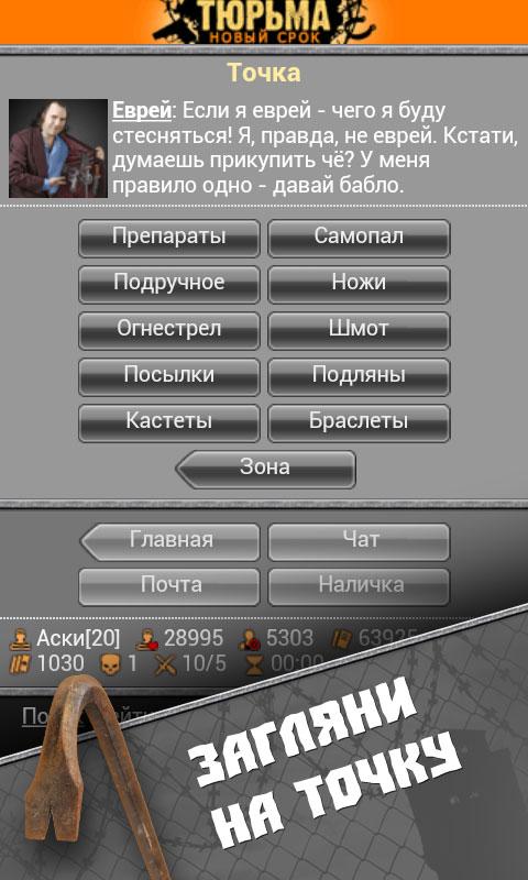 Используй все возможности игры «Тюрьма. Новый срок»! Потолкуй с друзьями в чате, пригласи в игру новых надёжных бойцов и обзаведись прочной крышей в виде Бригады и Братвы! Возникли проблемы? Выход есть — порешай их на Форуме.