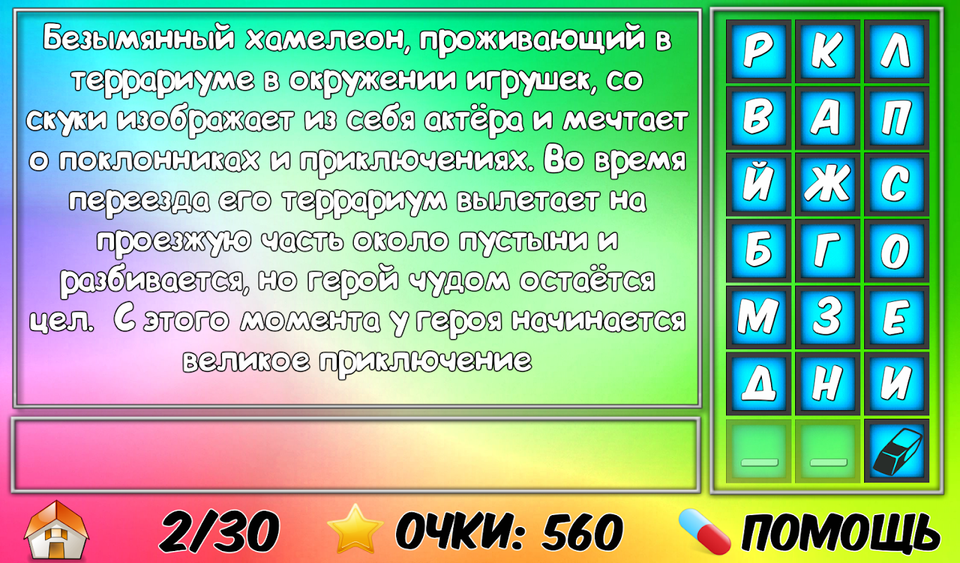 Игра понравится любителем мультфильмов, фильмов, головоломок, ребусов и викторин. Интересно будет играть как взрослым, так и детям.