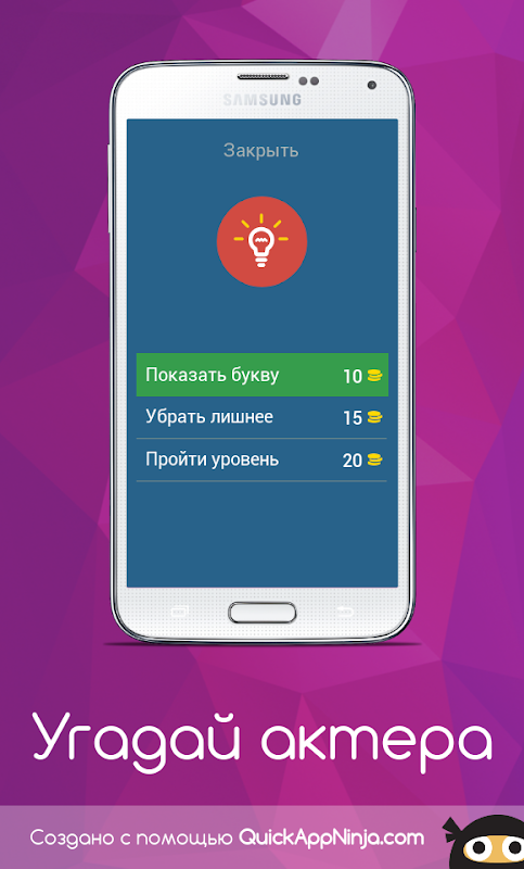 Угадай российского актера - это классическая андройд-викторина, в которой тебе предстоит угадать знаменитых актеров по фотографии. Фотографии актеров скрыты за плитками. Постарайся угадать фамилию актера, открыв как можно меньше плиток. Чем меньше плиток ты открываешь, тем больше монет получаешь.