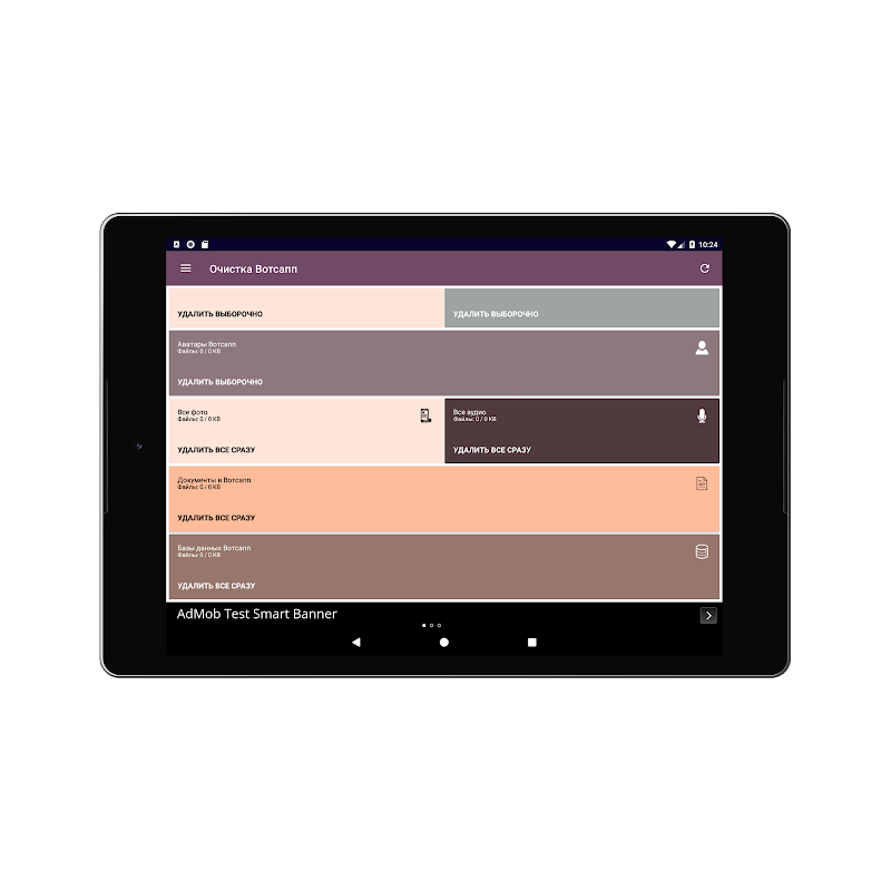 - выборочной очистки: фото, видео или аудио-файлов ;