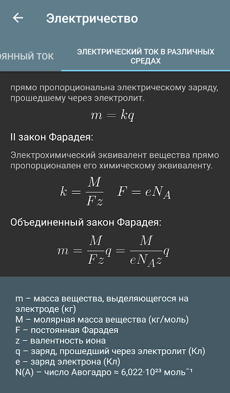 — Пояснение к каждой формуле (по нажатию): входящие в нее величины, их размерность и константы.