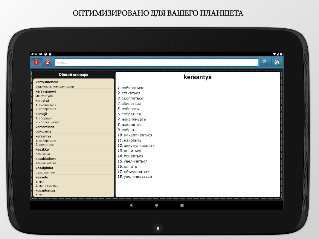 Наш словарь бесплатен. В нем нет ни рекламы ни встроенных покупок. Это приложение – наш подарок любителям чтения книг на финском языке!
