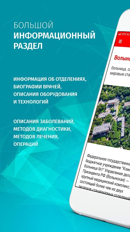 ФГБУ "Клиническая больница №1" Управления делами Президента РФ (Волынская) — это крупный медицинский комплекс, состоящий более чем из двух десятков стационарных отделений хирургического и терапевтического профиля, нескольких лечебно-диагностических отделений, а также поликлиники с более чем сорока профильными кабинетами.