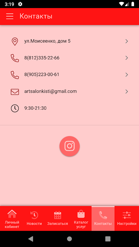 Добро пожаловать в Центр Маникюра Кисти! Данное приложение позволит вам самостоятельно выбирать удобное время для записи, а так же позволит вести учёт Ваших посещений и процедур, их стоимость, баллов на сертификатах, количество накоплений.