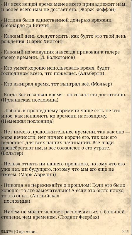 ہمارے پاس ہپپوکریٹس اور چیخوف ، اور نوسٹراڈمس ٹولسٹائی کے ساتھ ساتھ آئن اسٹائن اور پاسکل بھی ہیں۔ بیان کردہ کچھ خیالات اتنے عقلمند ہیں کہ انھیں اثبات ، دعا یا منتر کے طور پر دہرایا جاسکتا ہے۔