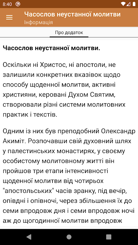 ان میں سے ایک Rev. Alexander Akimit بھی تھا۔ فلسطینی خانقاہوں میں اپنے روحانی سفر کا آغاز کرتے ہوئے، اس نے اپنی ذاتی نمازی زندگی میں روزانہ نماز کی شدت کے تین مراحل سے گزرا، صبح، شام، دوپہر اور آدھی رات کے چار "رسول" اوقات سے، دن میں سات اور سات اوقات میں۔ رات سے ہر گھنٹے تک۔ دن بھر۔