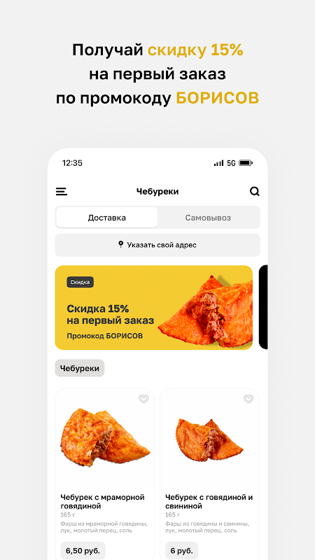 "Chebureks • Borisov" آپ کے شہر میں کھانے کی ترسیل کے لیے ایک درخواست ہے!
