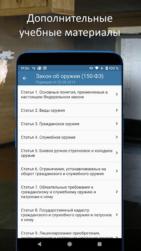 ہتھیاروں کی محفوظ ہینڈلنگ کے لیے نظریاتی امتحان پاس کرنے کی تیاری کے لیے ایک مؤثر درخواست BOO (بشمول "ہتھیاروں پر" (150-FZ) کا تازہ ترین قانون)۔