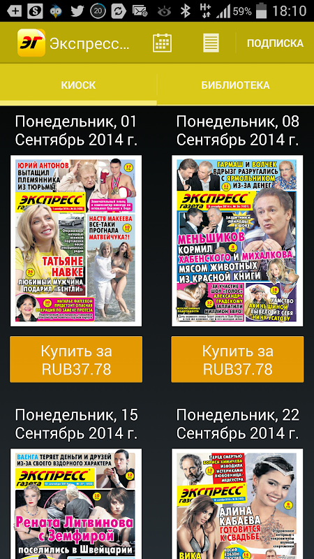 Киоск таблоида «Экспресс газета» позволит вам читать электронную pdf-версию популярного еженедельника. В киоске вы можете купить как свежий номер издания, так и оформить подписку на длительный период. В этом случае стоимость каждого отдельного номера будет во много раз ниже. Подписка на электронную версию газеты обойдется намного дешевле, чем на ее бумажный аналог с доставкой на дом. Издание выходит один раз в неделю по средам. При оформлении подписки вам сразу поступает свежий номер издания.