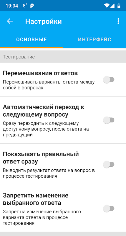 - "منتخب سوالات" موڈ، جو آپ کو پسندیدہ سوالات کی فہرست بنانے اور پھر تیار کردہ فہرست کے مطابق ٹیسٹ پاس کرنے کی اجازت دیتا ہے۔