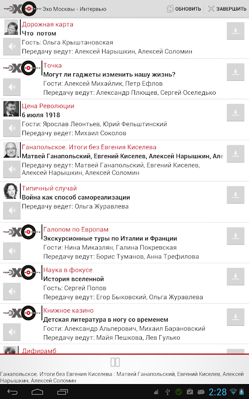Приложение для быстрого доступа к аудио-файлам интервью радиостанции "Эхо Москвы"