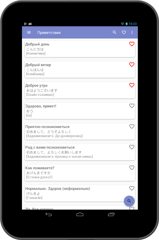 Будет способствовать обучению языку.Обучение сопровождается аудио. Приложение бесплатно.Подойдет как взрослым так и детям и начинающим. Разговорник работает без интернета(оффлайн).